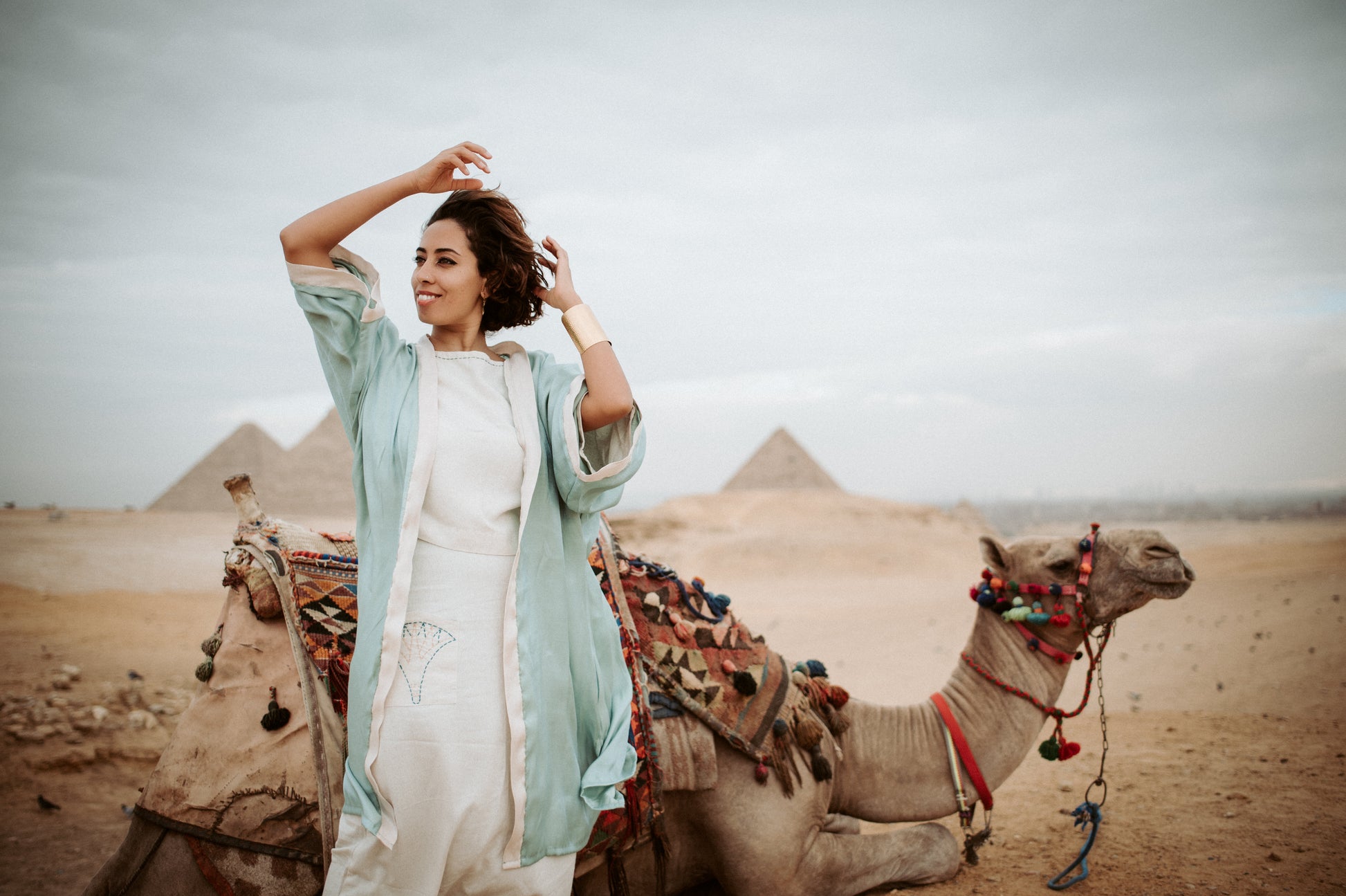 The Khepri Pure Linen Embroidered Top & Pant set features hand embroidery inspired by ancient Egyptian motifs. Crafted from pure Egyptian linen, the harem-style pants showcase an Egyptian Lotus design, while the top displays a scarab embroidery on the back. This combination of artistry and quality fabric ensures breathability and comfort.