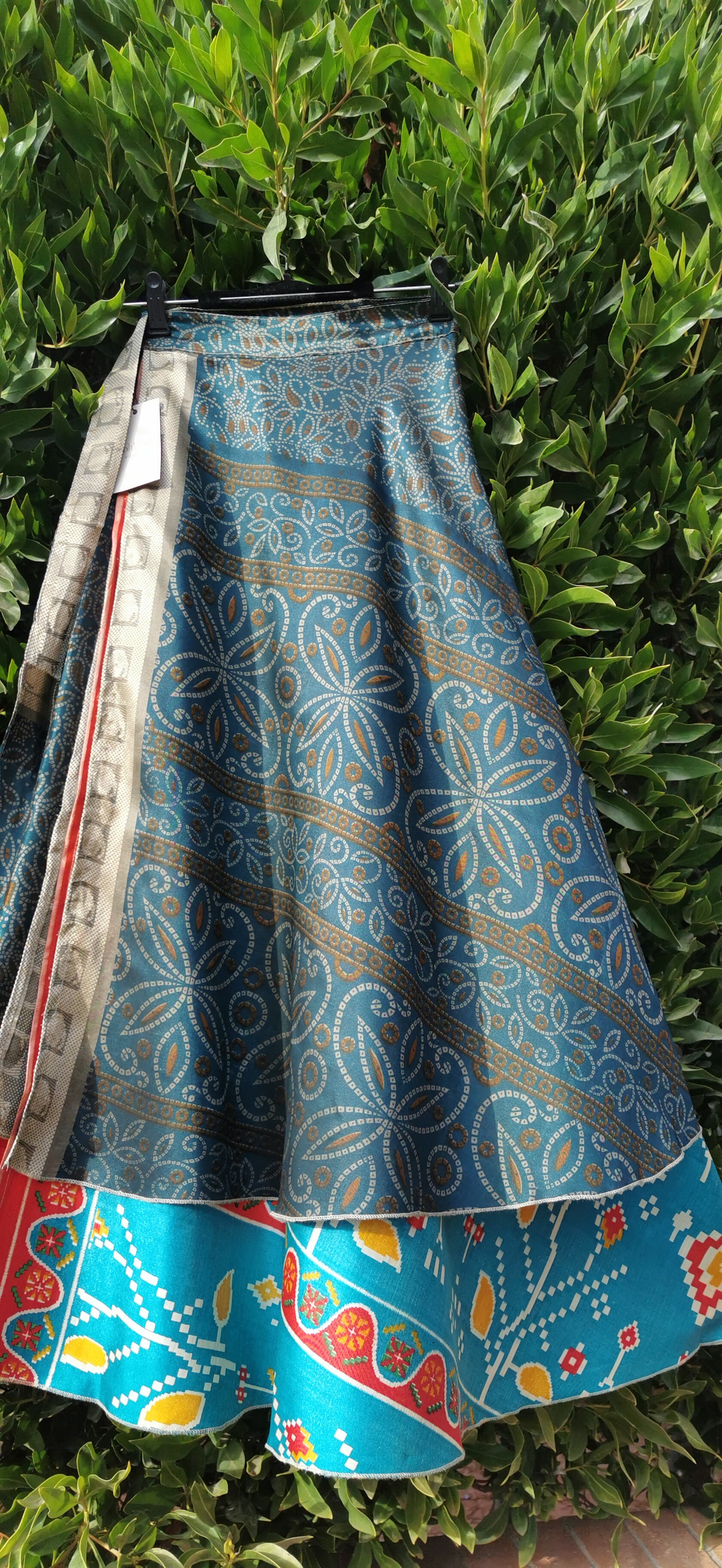 Discover the ultimate in versatile style with this exquisite silk wrap skirt/dress. Crafted from luxuriously soft, flowing silk, it drapes beautifully, offering unparalleled comfort and an airy feel. Each piece features authentic, vibrant patterns that truly stand out, making it perfect for any occasion where you want to make a statement.