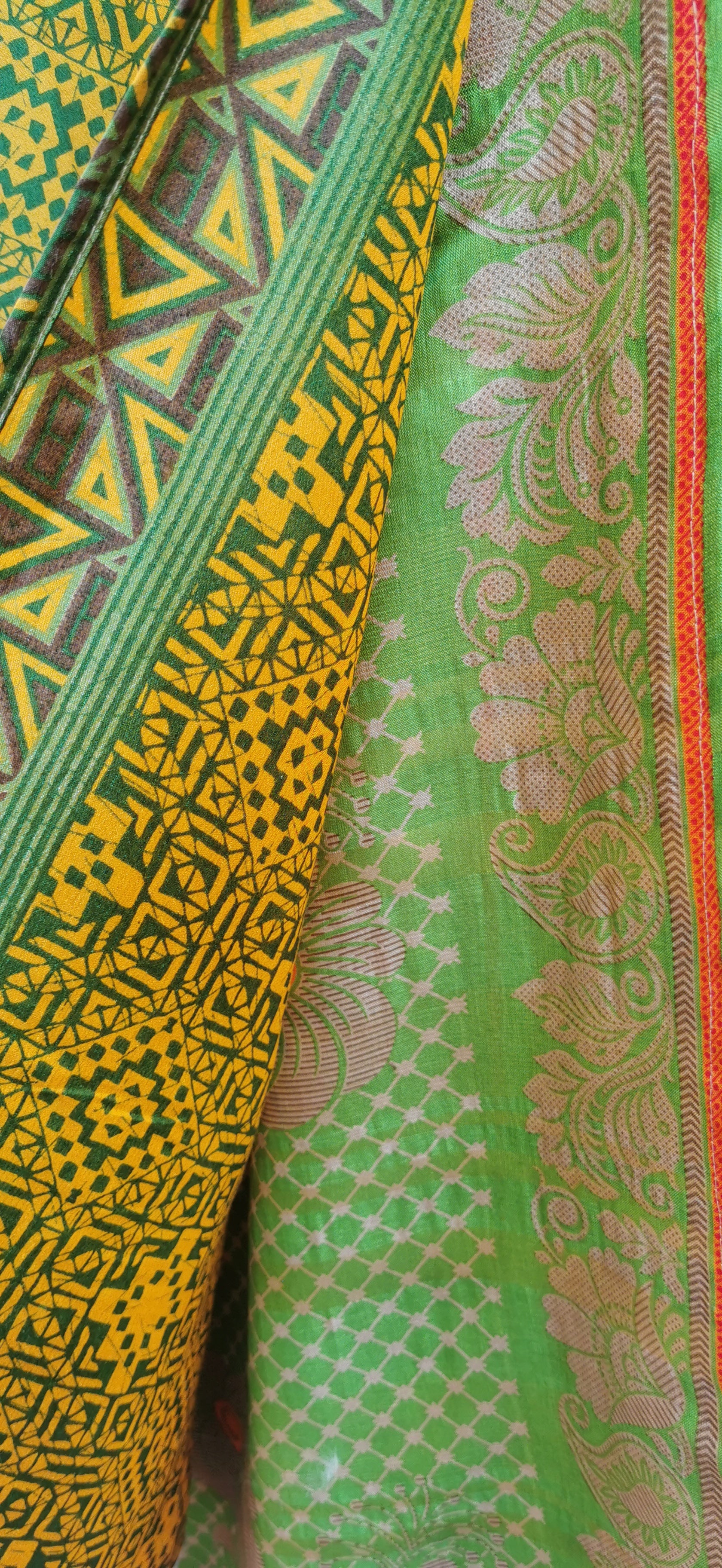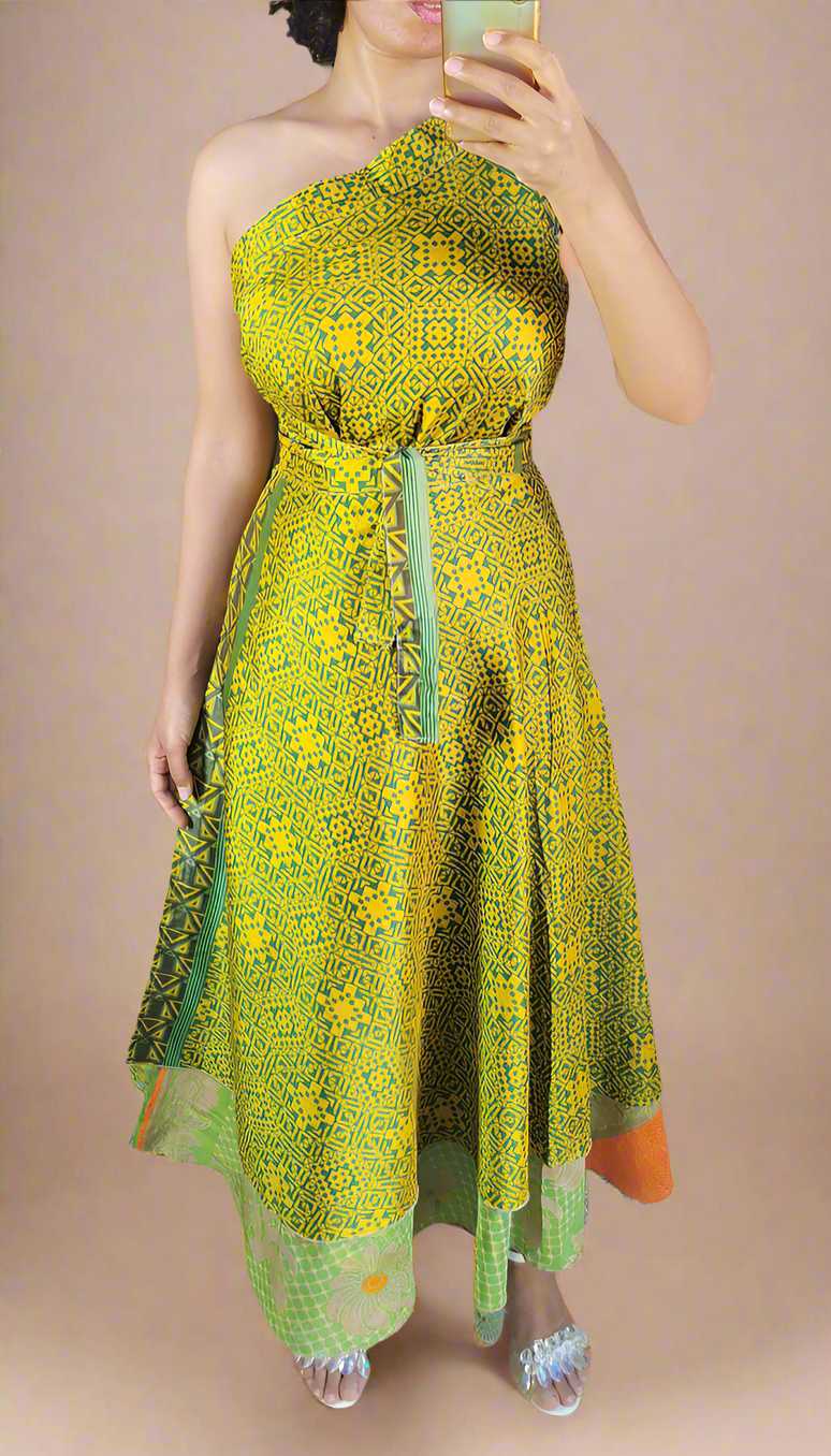 Discover the ultimate in versatile style with this exquisite silk wrap skirt/dress. Crafted from luxuriously soft, flowing silk, it drapes beautifully, offering unparalleled comfort and an airy feel. Each piece features authentic, vibrant patterns that truly stand out, making it perfect for any occasion where you want to make a statement.