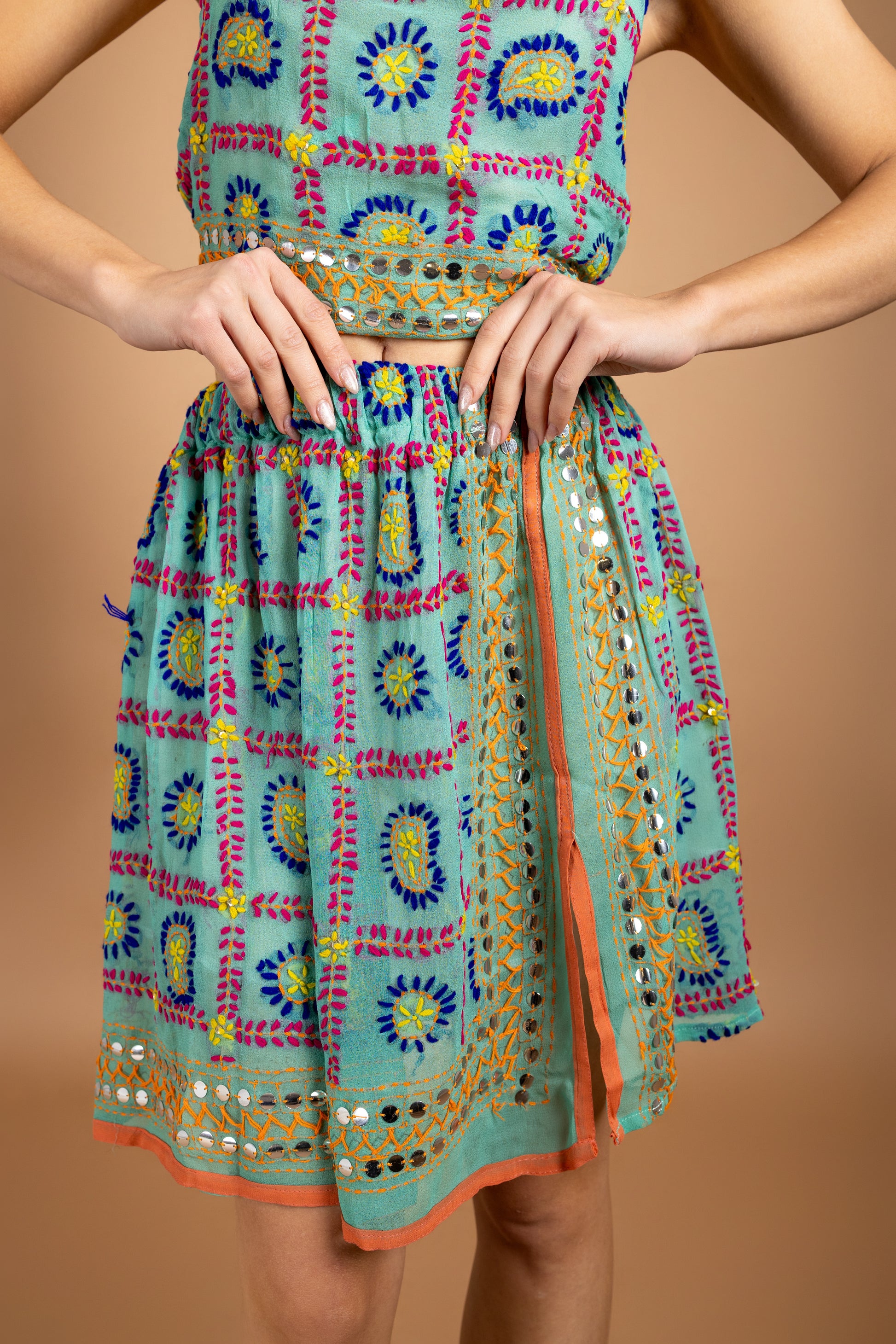 Be fearless and stand out in our Luna top and skirt. Unique, vibrant, and elegant, this set features beautiful hand embroidery and high-quality materials. Perfect for special evenings out or a day at the beach, these one-of-a-kind pieces are sure to make you the center of attention!